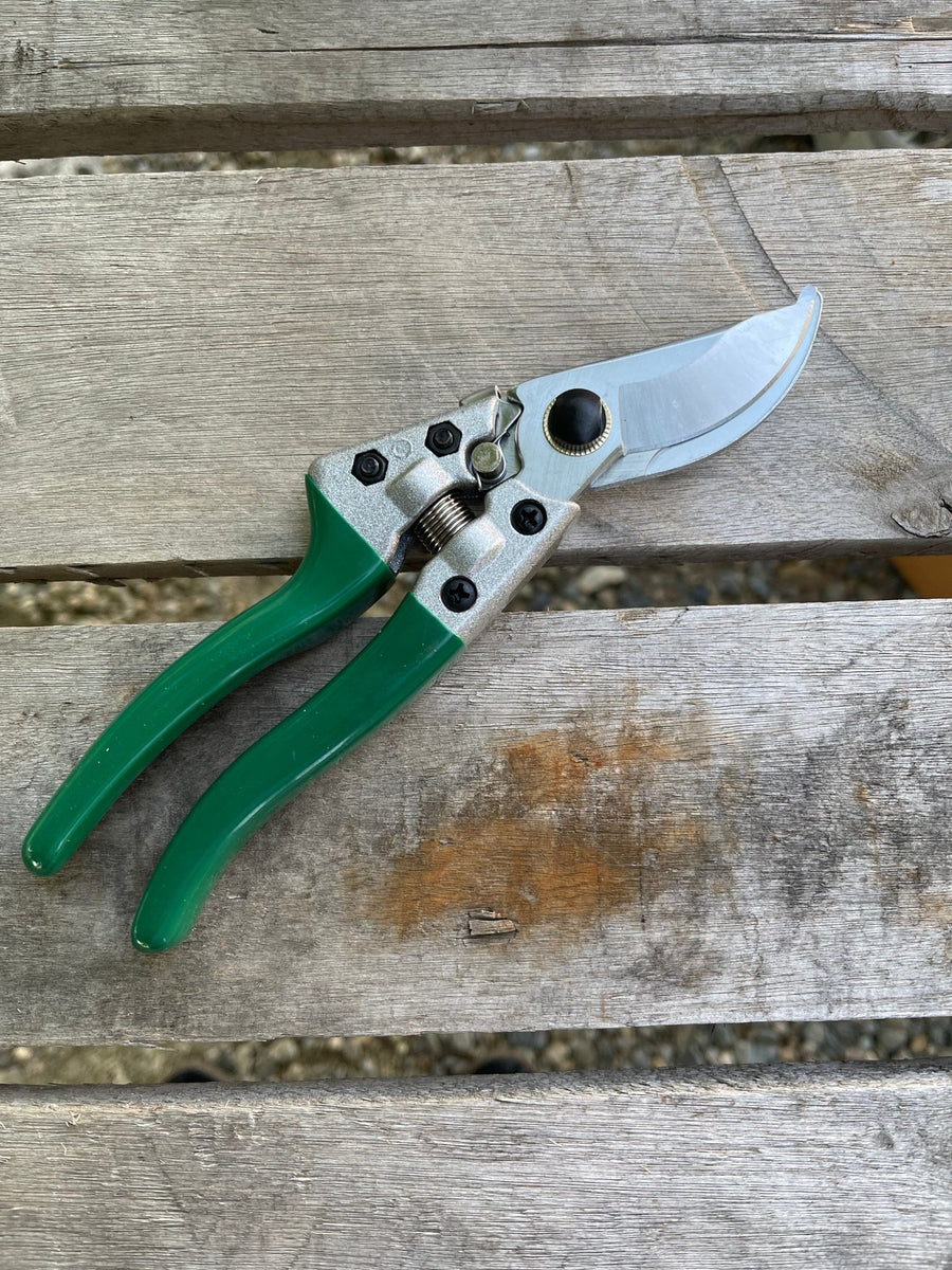 Secateurs - secateurs or pruners for one hand, are the tool of choice for pruning and clipping flowers in the garden. They are able to cut all kinds of stems, from the tough rose to the thin Batchelor Button, and they are a handy garden tool.